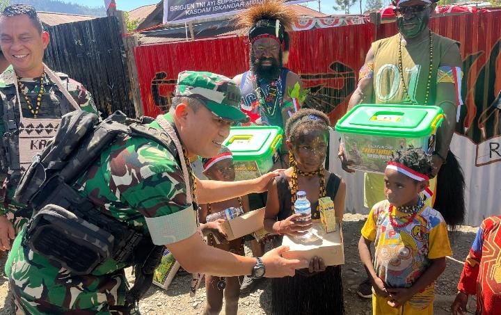 Kegiatan berlangsung dengan tertib, penuh kehangatan, dan sarat nuansa kekeluargaan. Lebih dari sekadar aksi sosial, momen ini memperkuat ikatan kemanusiaan antara TNI dan masyarakat Papua, menunjukkan bahwa kehadiran aparat negara tidak hanya di medan tugas militer, tetapi juga dalam ruang-ruang pelayanan dan empati.