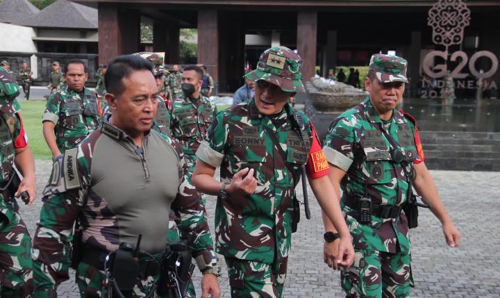 TNI menjadi garda terdepan dan penanggungjawab Keamanan KTT G20 di Bali berdasarkan Keppres RI Nomor 12 Tahun 2021 tentang Panitia Nasional Penyelenggara Presidensi G20 Indonesia Tahun 2022.