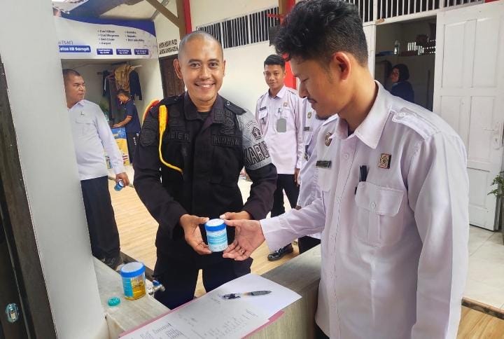 KALTENG | bhayangkaraperdananews.com – Lembaga Pemasyarakatan Kelas IIB Sampit Kantor Wilayah Kementerian Hukum dan HAM Kalimantan Tengah kembali melakukan Tes Urine, kali ini tes urine dilakukan kepada Sepuluh orang Pegawai Lembaga Pemasyarakatan Kelas IIB Sampit terdiri dari Komandan Jaga Satuan Pengamanan, 2 Orang Petugas Penjaga Pintu Utama (P2U), Petugas Satuan Pengamanan, dan Jajaran Administrasi Keamanan dan Ketertiban. Rabu (09/10/24).