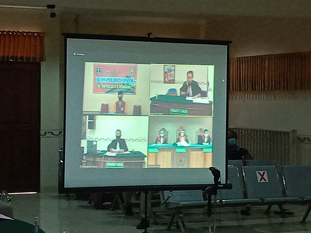 Sidang Pertama Sumani dengan Cara Online atau daring di Karenakan situasi dan kondisi Pandemi Covid 19. Sidang di jalankan di Ruang sidang Kartika klas II.