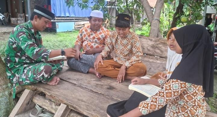 Mengenakan seragam loreng kebanggaannya, Serka Feri tampak telaten membimbing jari-jemari mungil anak-anak menelusuri huruf demi huruf hijaiyah. Suasana hangat menyelimuti kegiatan yang berlangsung sederhana namun penuh khidmat tersebut.