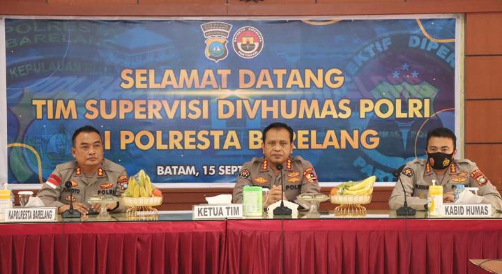 BATAM, bhayangkaraperdananews.com – Tim Supervisi Fungsi Teknis Kehumasan dari Divisi Humas Polri mengunjungi Polresta Barelang, hadir dalam kegiatan tersebut Ketua Tim Supervisi Divisi Humas Polri Kombes Pol Drs. Sumarto, M.Si beserta Tim, didampingi Kabid Humas Poda Kepri Kombes Pol Harry Goldenhardt S., S.IK., M.Si, Wakapolresta Barelang, Kasihumas Polresta Barelang, dan para peserta Supervisi. Kamis (15/9/2022).