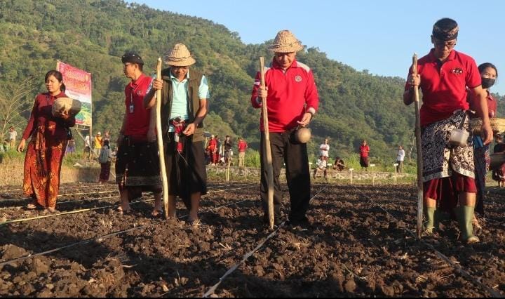 Berkaitan dengan hal tersebut, Bupati Karangasem, I Gede Dana, Senin (29/5/2023) pagi melakukan kegiatan menanam benih jagung secara simbolis di lahan tadah hujan di Subak Datah, Desa Kertha Mandala, Kecamatan Abang, Karangasem. Kegiatan ini sekaligis menadai dimulainya “Gerakan Tanam Jagung” yang nantinya akan di laksanakan di sejumlah daerah di Karangasem dengan target luasan lahan total 400 hektar.