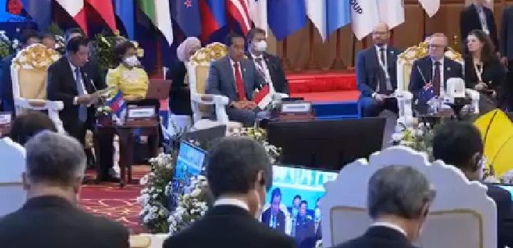 PHNOM PENH, bhayangkaraperdananews.com – Presiden Joko Widodo memaparkan tiga hal fokus utama ASEAN dalam menghadapi tantangan ekonomi kawasan. Hal tersebut disampaikannya saat berbicara pada ASEAN Global Dialogue Ke-2: Post Covid-19 Comprehensive Recovery di Hotel Sokha, Phnom Penh, Minggu, 13 November 2022.