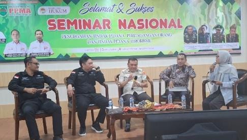 Adapun seminar nasional ini digelar bertujuan agar masyarakat mengerti tentang hukum perdangangan orang ,serta kisi kisi hukumnya begitu juga dengan tindak pidana terorisme.”ujar Fri