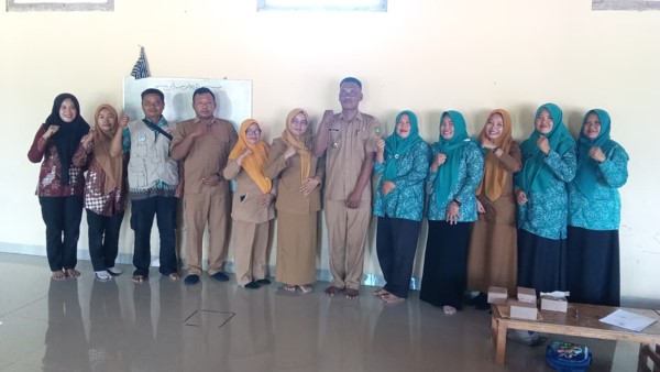 Dalam suasana penuh semangat dan kebersamaan, seluruh peserta berfoto bersama dengan gestur tangan mengepal sebagai simbol komitmen memajukan Pendidikan Anak Usia Dini di wilayah tersebut.