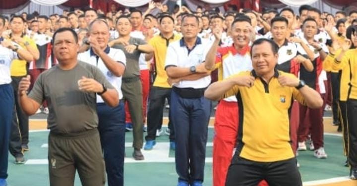 “Serentak hari ini kita melaksanakan kegiatan olahraga bersama TNI – Polri yang ada di Jawa Timur,”ujar Kombes Dirmanto.
