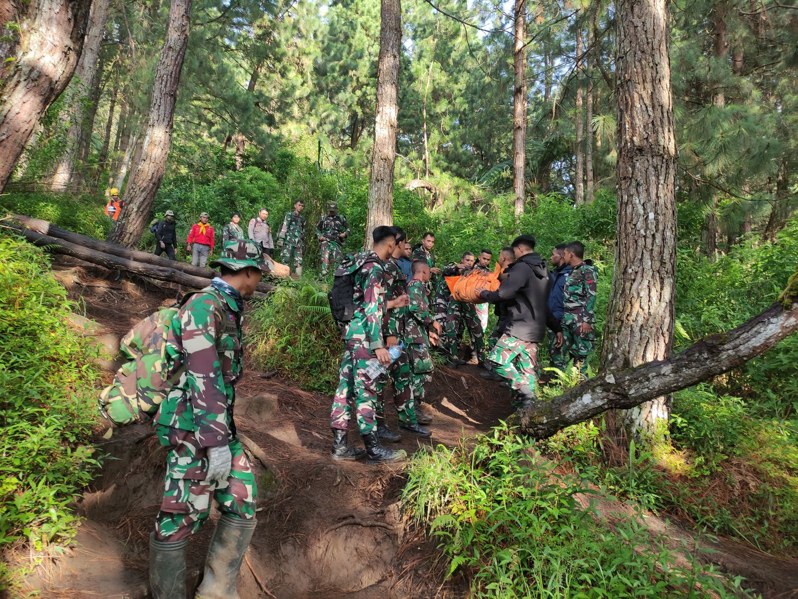Tim SAR gabungan TNI dan Polri segera dikerahkan untuk mengevakuasi korban. Proses evakuasi berlangsung dalam kondisi medan yang berat dan cuaca yang tidak mendukung.