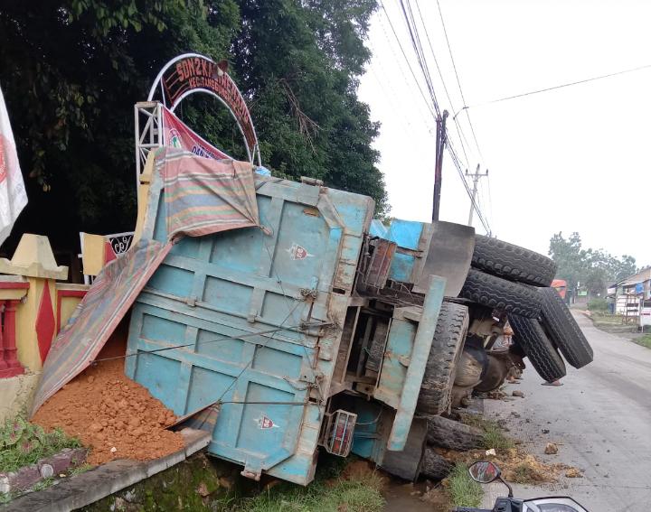 Truck dengan nomer polisi H 1587 ME, yang dikemudikan bernama Surahman warga desa Karangmalang 6/2 kecamatan Gebog Kudus, dikarenakan muatan over Super, kondisi Sopir dalam keadaan capek sehingga tak bisa mengendalikan kendaraannya akibatnya terperosok persis didepan pintu gerbang masuk sekolahan SDN kaliwenang, mengakibatkan murid murid tidak bisa masuk dikarenakan jalan masuk tertutup badan truk dan material yang tumpah.