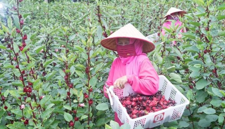 Sekelompok ibu rumah tangga melakukan pengolahan rosella di kawasan Sentra Industri Bukit Asam (SIBA) Center, Desa Lingga, Kecamatan Lawang Kidul, Kabupaten Muara Enim. Mereka adalah para perempuan yang mengelola Sentra Industri Bukit Asam (SIBA) Rosella.