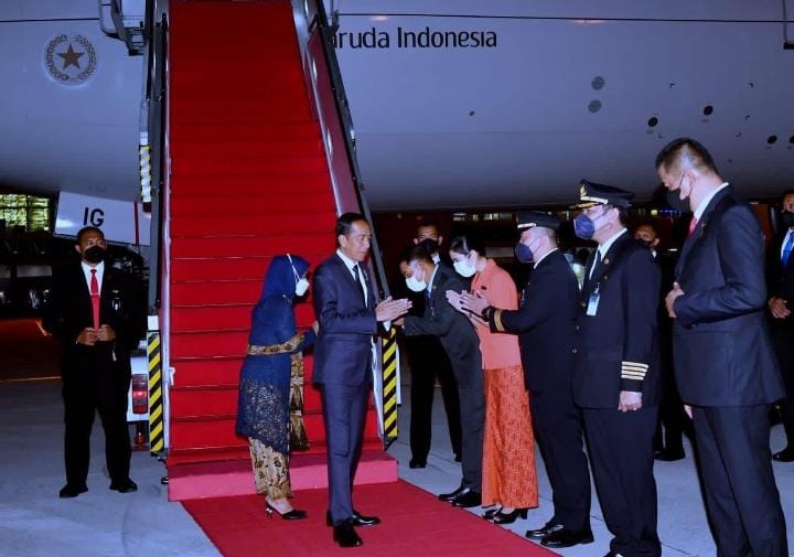 TANGERANG, bhayangkaraperdananews.com – Setelah menempuh penerbangan selama kurang lebih 14 jam dari Brussels, Belgia, Presiden Joko Widodo dan Ibu Iriana Joko Widodo tiba di Bandara Internasional Soekarno-Hatta, Kota Tangerang, Banten, pada Kamis, 15 Desember 2022, sekitar pukul 18.30 WIB.