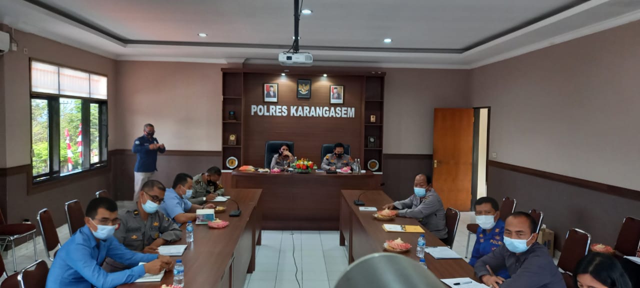 Kegiatan zoom meeting dihadiri oleh Kapolres Karangasem AKBP NI NYOMAN SUARTINI, S.I.K., M.M.Tr , Wakapolres Karangasem Kompol I DEWA GEDE PUTU ANOM D, S.H., S.I.K., M.H. , Para Kabag dan Kasat Polres Karangasem dan