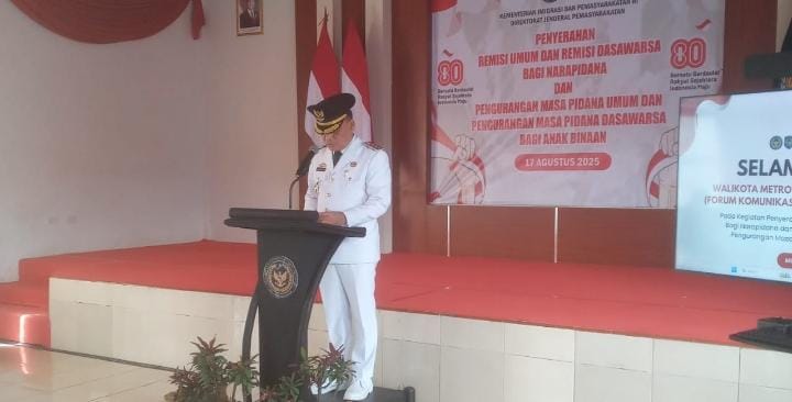 Kalapas Metro Tunggul Buono, Bc.IP,  S.Pd, SH, MH,  dalam sambutannya mengatakan bahwa Remisi Dasa warsa ini diberikan kepada Warga binaan yang dinilai baik saat berada dalam lapas sesuai aturan saat menjalani hukuman, tegasnya.